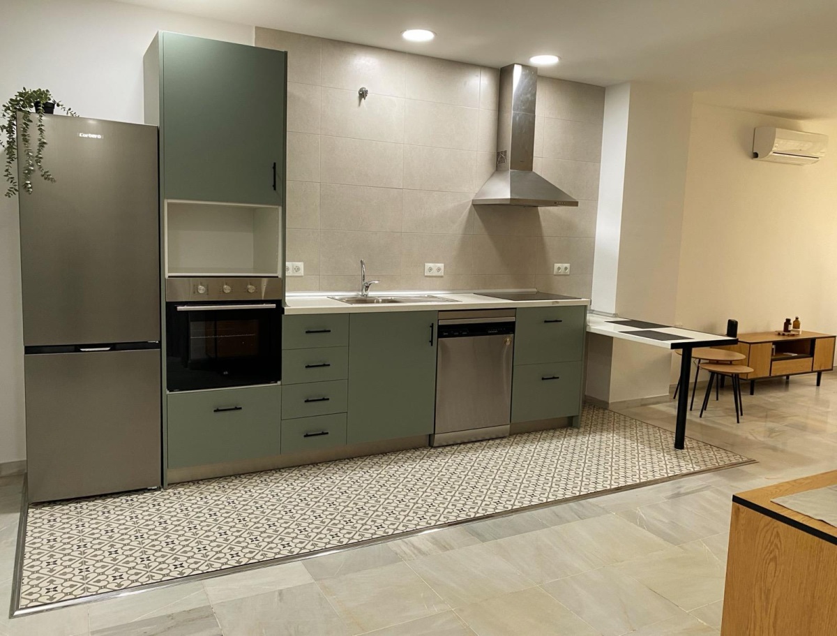 Great loft for long-term rental in Malaga. Spacious, with separate area for a double bed, also glass partition for various uses (office, extra bedroom, dressing room, etc.). Well-equipped kitchen, everything new in impeccable condition and with excellent style, unbeatable location, bathroom with shower tray. Furnished. Water, electricity and Wi-Fi charges not included. Pets are NOT allowed. Proof of income required, maximum 1 couple. Ref. 3228